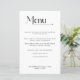 This minimal menu with modern typography is perfect for a modern wedding, minimal wedding or any other celebration. This menu template features a sleek, clean and chic design. All colours of this wedding menu card - text and background - can be customised and changed in the design tool.