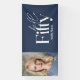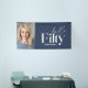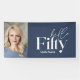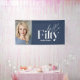 Modern minimal typography simple blush navy blue and white 50th birthday photo party banner. Part of a contemporary collection.