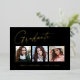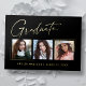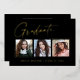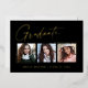Clean, trendy, modern and elegant "3 Photo" graduation announcement gold foil cards (your choice of gold silver or rose foil), featuring design elements of modern text with a unique calligraphy ink script. The graduate's photos are accented with a delicate & minimalist partial boarder. The back of the card offers personalised text spaces for information about your graduation or can be cleared if you wish to hand write a message. Black with gold foil or easily customise the background to match your school's primary colour or any colour of your choice. Perfect for the high school, college and university grad student senior.