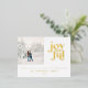 Modern minimal joyful Christmas photo holiday foil postcard. Beautiful bold graphic typography design. Part of a collection.