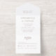 Modern, minimal, All in One Wedding Foil Invitation - available in Gold, Silver and Rose-Gold Foil. Announce your wedding date in style with this modern, minimal card. The design features a full-size photo of your choice with a soft white filter applied automatically, giving it a romantic and elegant touch. The clean layout, enhanced by a blend of classic and scripted fonts, emphasises simplicity and sophistication. Personalise the card with your names, wedding date, and location to create a stunning announcement that sets the tone for your big day. Perfect for couples who want a chic and timeless invitation to share their love story.