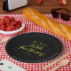 This simple and aesthetically designed paper plate features a yellow colour vibrant typography on a black background. Perfect party supplies for a modern and simple theme birthday celebration.