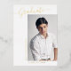 This silver foil, elegant yet minimalist graduation announcement card, features design elements of modern text fused with calligraphy script. The front of the card text is in real foil with your choice of gold, silver or rose. The graduates photo is artfully placed on the front of the card while the back of the card offers personalised text spaces for information about the graduation and future journey. To see more items like this, visit my store here at "www.Zazzle.com/LakeViewCardCo". Thanks