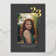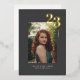 Elegance meets modern minimalism in this 2023 Graduation Invitation, a stylish way to mark the remarkable achievement of the Class of 2023. On the front, a single, carefully chosen photo set against an inky black background, encapsulating the essence of this monumental moment. The number "23" is subtly overlaid on the top right corner printed in real shimmering gold foil, adding a touch of sophistication. The graduate's name and school are gracefully displayed at the bottom, creating a personalised and meaningful touch.
