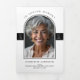 This elegant funeral program template features a timeless black and white design with two custom full colour photos, offering a beautiful way to honour your loved one’s memory. The minimalist layout uses clean lines, sophisticated typography, and a refined, modern style to create a respectful and heartfelt tribute. Thoughtfully organised sections for acknowledgements, order of service, and obituary are framed by subtle accents, giving the program a polished and professional appearance. The classic monochrome colour scheme conveys warmth, dignity, and grace, making this template ideal for memorial services, celebrations of life, and remembrance ceremonies.