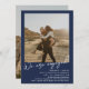Modern minimalist 2 photos engagement party navy invitation