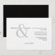 Modern minimalist ampersand wedding invitation. Classic block, plain and script text with large ampersand. Horizontal layout. Back is black.