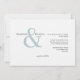 Modern minimalist ampersand wedding invitation. Classic block, plain and script text with large ampersand. Horizontal layout. Back and ampersand light blue.