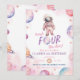 Modern Minimalist Astronaut Girl's 4th Birthday Invitation