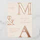 Modern Minimalist Beige Rose Gold Foil Wedding Invitation. Features bold monogram typography and minimal graphic design. Personalise text with all the details of your special day.