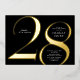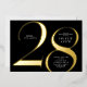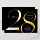 Modern minimalist 28th birthday party invitation features stylish gold foil number 28 and your party details in classic serif font on black background colour, simple and elegant, great surprise adult milestone birthday invitation for men and women.