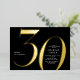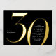 Modern minimalist 30th birthday party invitation features stylish gold foil number 30 and your party details in classic serif font on black background colour, simple and elegant, great surprise adult milestone birthday invitation for men and women.