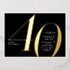 Modern minimalist 40th birthday party invitation features stylish gold foil number 40 and your party details in classic serif font on black background colour, simple and elegant, great surprise adult milestone birthday invitation for men and women.