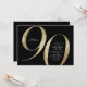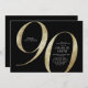 Modern minimalist 90th birthday party invitation features stylish faux gold foil number 90 and your party details in classic serif font on black background colour, simple and elegant, great surprise adult milestone birthday invitation for men and women.