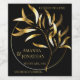 Modern Minimalist, wedding bottle label. A gold leaf ensemble on a classy black background. Personalise with your event details.