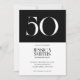 Modern minimalist 50th birthday invitation featuring simple design with elegant chic typography in black and white colour.
