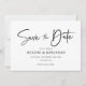 Announce your big day in style with our Modern Minimalist Black And White Elegant Wedding Save the Date card. Blending a contemporary aesthetic with a touch of timeless elegance, the design is the epitome of simplicity and sophistication. The use of simple yet striking refined calligraphy script typography adds a personalised touch, setting the tone for a celebration that is both chic and unforgettable. Make your wedding announcement truly special with this elegant card, showcasing a perfect combination of timeless tradition and modern flair.