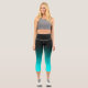 Modern Minimalist Black Aqua Gradient Capri Leggings