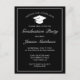 Graduation invitation postcard. Stylish modern minimalist black white design with a thin frame.