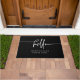 This door mat features a modern black background with a minimalist font combination. It's the perfect addition to inside or outside of your house to celebrate the arrival of your friends and loved ones.