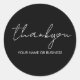 Modern Minimalist Black Script Thank You Classic Round Sticker