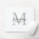 Modern Minimalist Black Script White Grey Monogram Mouse Mat