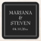 Modern wedding paper coasters for your wedding reception, rehearsal dinner and bridal shower in the border minimalist black theme, barware.
