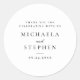 This elegant wedding favour sticker showcases a minimalist black-and-white design that exudes timeless sophistication. Featuring clean, classic typography with both serif and script fonts, it includes a personal thank you message, along with the couple's names and wedding date. Perfect for adding a refined touch to favour bags, candles, or other wedding keepsakes, this sticker complements any formal or modern wedding theme. A stylish way to show appreciation, this design offers guests a personalised memento that celebrates your special day with understated elegance.