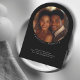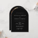 The invitation features a striking black backdrop, providing a rich, deep base for the crisp white typography. The unique arch-shaped wedding template frames your wedding details with modern flair, creating a distinctive and eye-catching design.