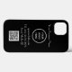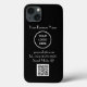 Elegant, modern, minimalist, Logo, QR Code, stylish, simple black and white iPhone 13 case. Perfect for business. Personalise with name, website and logo.