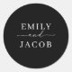 Modern Minimalist Black & White Script Wedding Classic Round Sticker