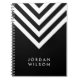 Modern minimalist black notebook featuring a white chevron pattern that you can personalise with your name. Great for school or office.