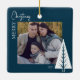 modern minimalist blue photo christmas keepsake ceramic ornament