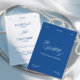 A sophisticated wedding invitation featuring an elegant handwritten script paired with clean serif typography in classic blue. Perfect for coastal weddings, French Riviera celebrations, and sophisticated minimalist wedding themes. The layout keeps the focus on names and typography, making it feel calm, airy, and elevated. Part of the coordinated wedding collection "Florence" — explore matching pieces across the full suite. Mockups for this design were created using Midjourney AI.