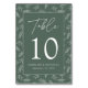 Modern Minimalist Botanical Dark Sage Wedding Table Number