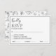 The front of the card features a bold, minimalist layout with a crisp black border and elegant typography. Flip the card over to reveal the signature black and white floral line art pattern that ties the entire stationery suite together. This functional piece includes clear sections for response deadlines, guest names, attendance status, and meal choices.