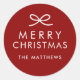 Share a little festive charm with this minimal modern Christmas sticker featuring a delicate bow illustration and elegant typography. The deep red background and crisp off white text create a timeless holiday look that pairs beautifully with greeting cards, envelopes, and gifts. Personalise with your family name for a polished finishing touch that feels both classic and contemporary.