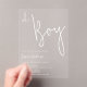 This minimalist boy baby shower clear acrylic invitation template.