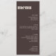 This wedding menu in brown features clean typography and a neutral color palette that works with many wedding themes. Personalize the menu items to match your reception meal and course selections. A simple, stylish option for wedding table settings and place settings. Designed to coordinate easily with modern and minimalist wedding decor.