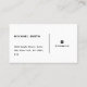 The back of the card continues the minimalist theme with the full name, address, and a social media handle. The vertical line in the centre effectively separates different sections, adding to the clean and organised look.