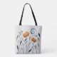 Modern minimalist calligraphy hummingbirds flowers tote bag