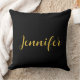 Modern Minimalist Calligraphy Name Black Gold Cushion