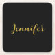 Modern Minimalist Calligraphy Name Black Gold Square Paper Coaster