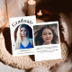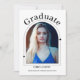 A Modern Script Graduate. Simple Photo Graduation Announcement Card with an arch photo on the front and the recipient's name and graduation details. The back contains a second shot with more details. To customise this design, click the edit button.