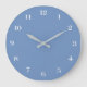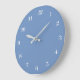 A modern, minimalist wall clock design with a lovely light blue background and white numerals. The perfect addition to any home or business.