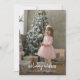 A child, in a charming, festive pink tutu, stands before a Christmas tree adorned with white ornaments, with a look of wonder, in a modern, minimalist home bathed in soft muted pinks, greys, and whites. 'Holiday Wishes' is elegantly rendered in brush script typography, below, completing this magical holiday scene. Please note: This image is a sample. You must replace it with your own favourite Christmas photo. The finished product is available in print or as a digital download, or both