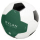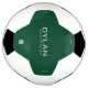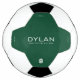 Modern, minimalist personalised soccer ball with name in a sans serif font in white on a dark green background. This can be customised with a team jersey number and other customised text at the top and right below the main name in the centre. This would make a fun birthday or holiday gift as well as a commemorative keepsake.