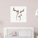 A modern twist on holiday tradition—this poster features a minimalist line art deer with crown-like antlers, a tilted profile, and a single evergreen-hued eye. A festive red accent adds holiday charm against the crisp white background, creating a design that’s elegant yet understated.