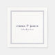 Modern minimalist double border wedding napkins. Lower case navy blue text name field and personalised notation or wedding location.