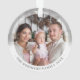 Modern minimalist style, double sided, two photo, round acrylic ornament. This custom design features your personal photos on front and back, each highlighted in a creative double gradient boarder. The designs typography offers a fully editable Merry Christmas Greeting on the front and your names or family name on the back. The text is in a warm platinum colour which also can be easily edited to any colour of your choosing. The perfect keepsake gift and tree décor for the holidays & Christmas.